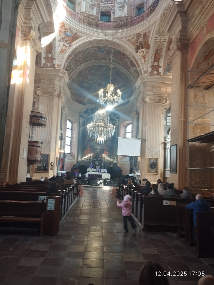 Во время службы экскурсоводов просили не заводить туристов .так как костел был и так переполнен.