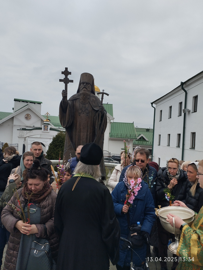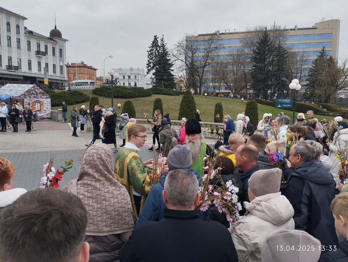 Народу в православном храме не много .большинство стоят на улице освещают веточки вербы.