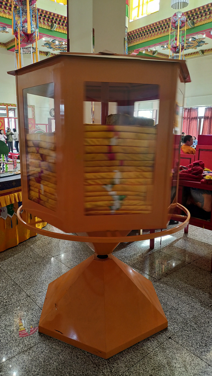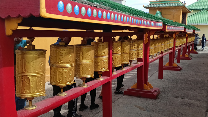 Особенно вот такой барабан. В нем свертки с молитвами. Разом сотня молитва
