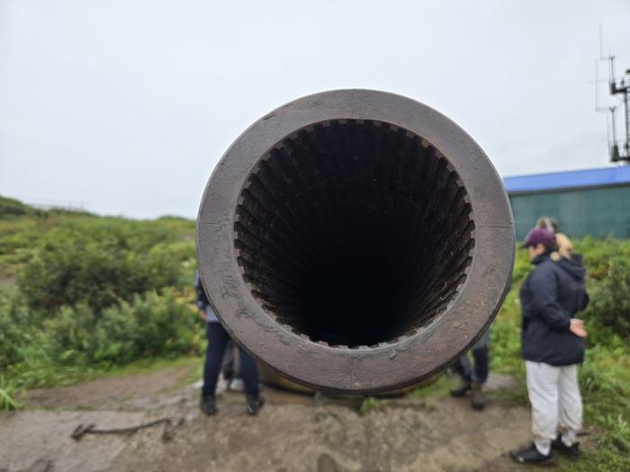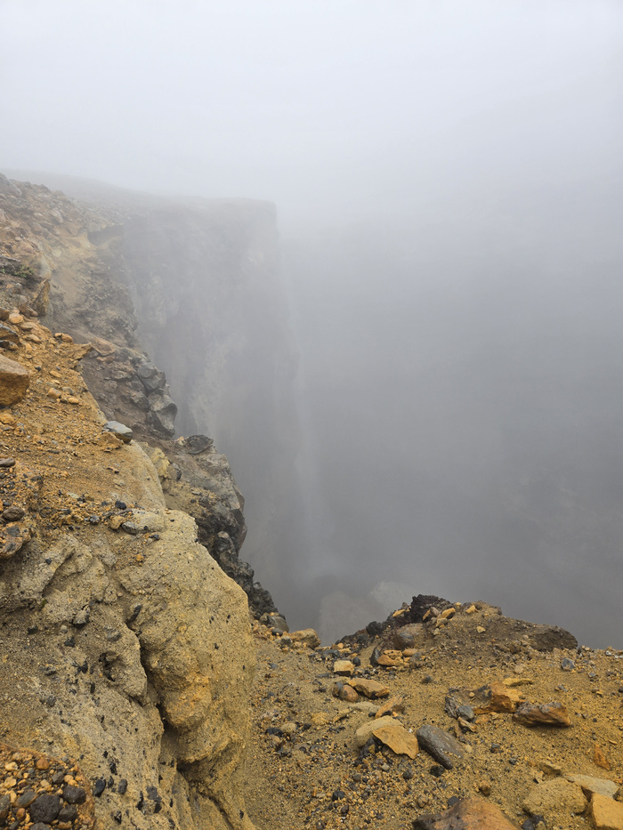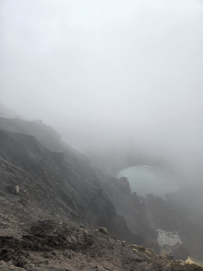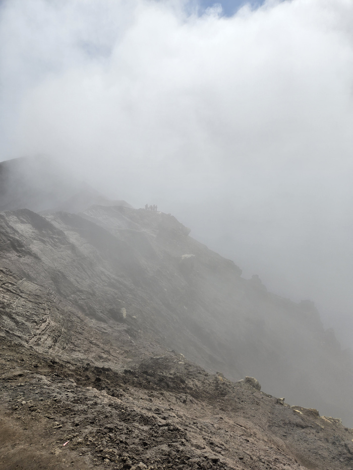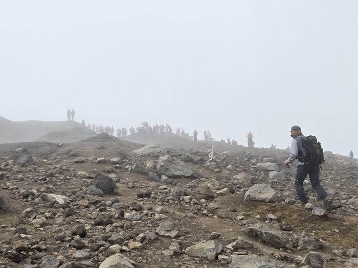 народ стоит на краю кратера, ждёт , может, туман рассеется