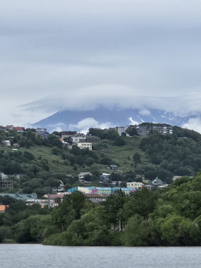 опять вид из окна на Вилючинскую сопку и облакообразующую Мутновскую