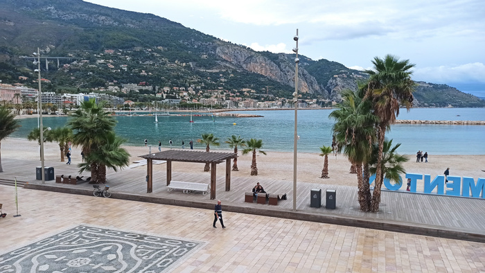 Но это пол беды, промокли насквозь кроссы, просто вода ручьем из них, немного посушились в хлюпаюших кроссах срочно потопал, купил тапочки за 35 евро у какого то веселого мужичка итальянца, порассказывл какие то веселые истории на смеси итальянского и французского языка, на русском также-спасибо, до свидания и на здоровье, подарил носки , в-общем угарный дядька) На трамвайчике в отель, чек аут, поезд минут 40 и мы в Ментоне, тут у нас был забронен Ибис на две ночи, выдали карту от номера повыше классом чем я оплачивал, шикарный большой номер на третьем этаже, самое прекрасное что в нем ещё было это балкон со столиком и стульями, вечером отлично можно было ужинать, курить и попивать всякие вкусности.