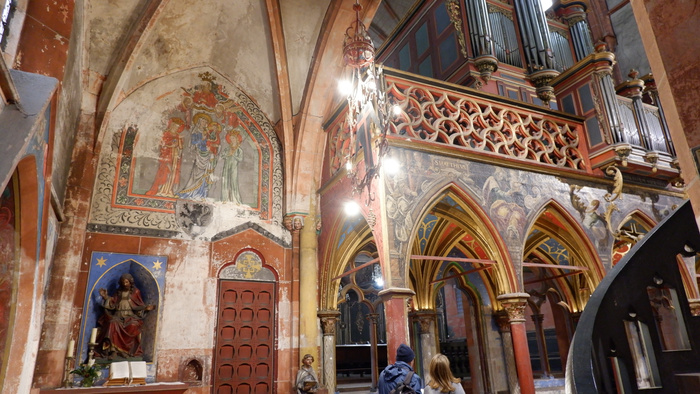 Церковь Св.Петра, интересна фресками если не ошибаюсь 14 века и самой концепцией-неф был лютеранским, а хор-католическим, так и существовали 2 в 1