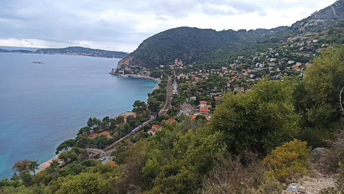 Кароче задерживаться мы не стали уехали обратно в городок Эз. Цель была сходить на кактусовую ферму, но решили начать с тропы Ницше в горах. Черт меня дёрнул. Тропа проходит в горах, с меня сошло десять потов, осилили дай бог половину маршрута, ещё воды с собой не было, кароче проклял все на свете. Зато сверху открылись потрясающие виды. Судя по карте ферма находилась ещё выше, я конечно плюнул на эту затею и потопали вниз, сели на поезд и уехали в Ментону.