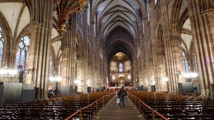 Ну и понятно первым делом к местному Дуомо и району маленькая Франция. Район филиал туристического ада на земле, народу много конечно, но оно стоило того. Собор внутри конечно поскромнее чем снаружи, особенно по сравнению с богатым убранством итальянских, но размеры и детали конечно восхищают. Т.к. были с дороги зашли в первый попавшийся тут же ресторан отметить приезд вкуснейшим стейком и ризотто , бокалом крафтового пива, жене соответственно апероль.