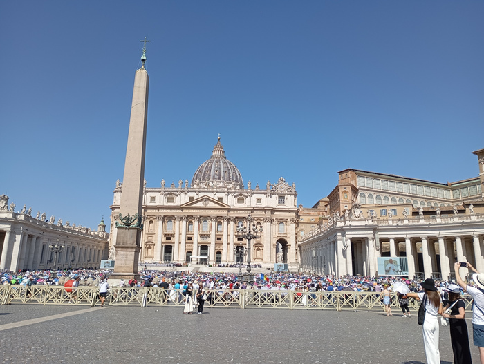 Короче, один день мы потеряли. На другой день уговаривала мужа не ходить со мной, но он уже чувствовал себя хорошо и гуляли мы вместе. На улице было + 36 градусов. Поэтому гулять было так себе. Съездили в Ватикан, но там было какое то мероприятие И мы просто послушали выступление пары, но не