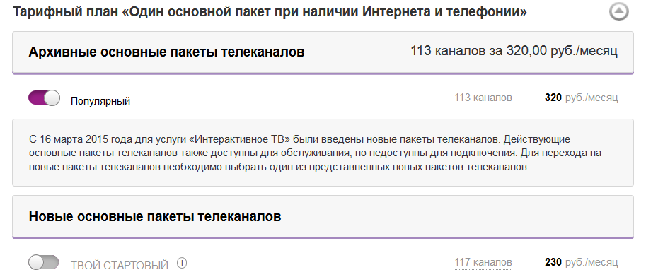 Доброго времени суток! Такой вопрос. Вот у меня сейчас на ТВ подключен тариф популярный, который архивный. Сейчас посмотрел в ЛК, там следующая картина: