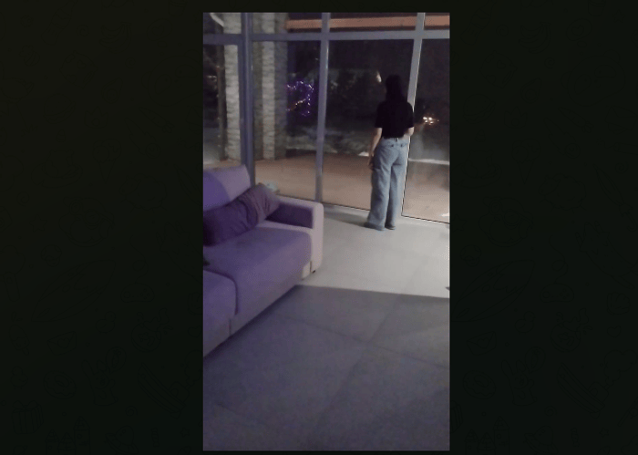 Вот видно на кадре с видео, как сосна с гирляндой во дворе светится: