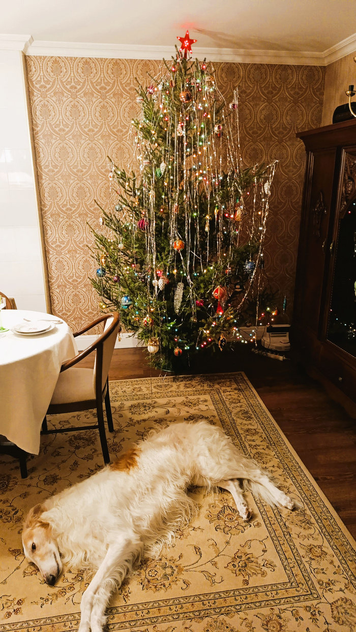 Ёлка с "дождём" как из моего далёкого детства, когда у нас дома ещё не было кошек.