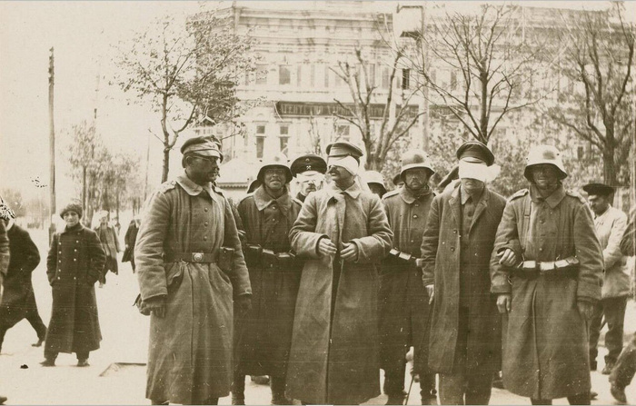 Германцы в Ростове, 1918 год. У российских парламентёров завязаны глаза: