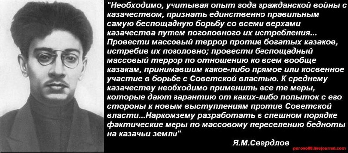 24 января 1919 года по инициативе председателя ВЦИК Якова Свердлова была принята секретная директива ЦК РКП(б) «Об истреблении казачества».