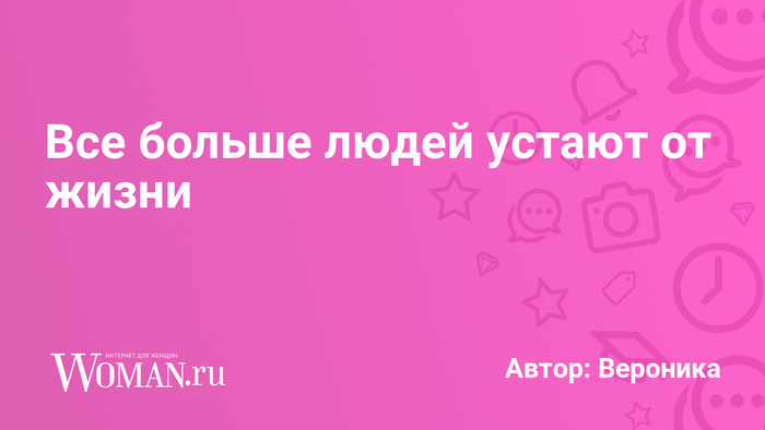 Стала замечать ,что все больше людей устают от жизни . Хотят просто быть вдали от суеты. У многих пропал вообще интерес к жизни. А вы заметили это ?