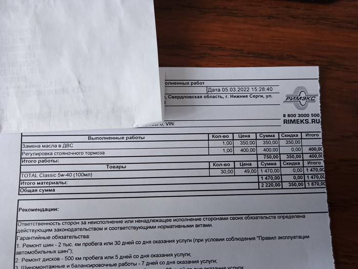 И в заказ-наряде фильтра нет, ну ок, со своим приехали, так что всяко выше 2 т.р. потратили. Через 2 месяца это рубля 3-3.5 будет стоить.
