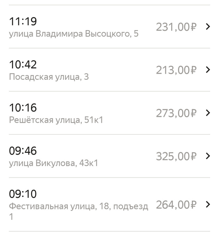 И вот, где-то после пересечения ул. Шварца сумма заказа начала резко увеличиваться (т. е. включился давно забытый счётчик)