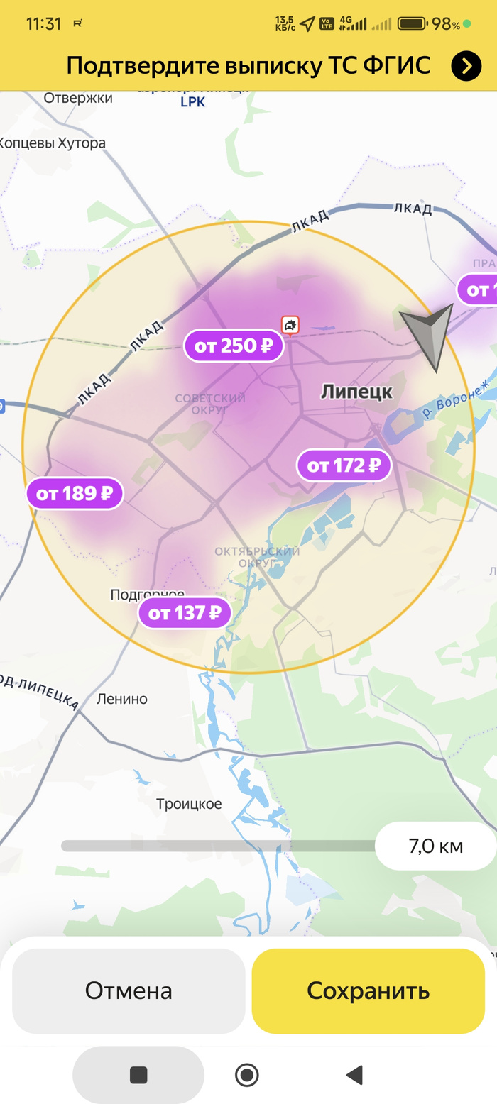 У меня тоже цены упали. 650р в час Даже из зоны спроса фигня приходит. Плюс ещё и трасса цены упали (из Рассохи до города 740р , подачи платные типа 10 км за 150р. Причем первые 1200р легко - дальше заказы по 220р изматывает