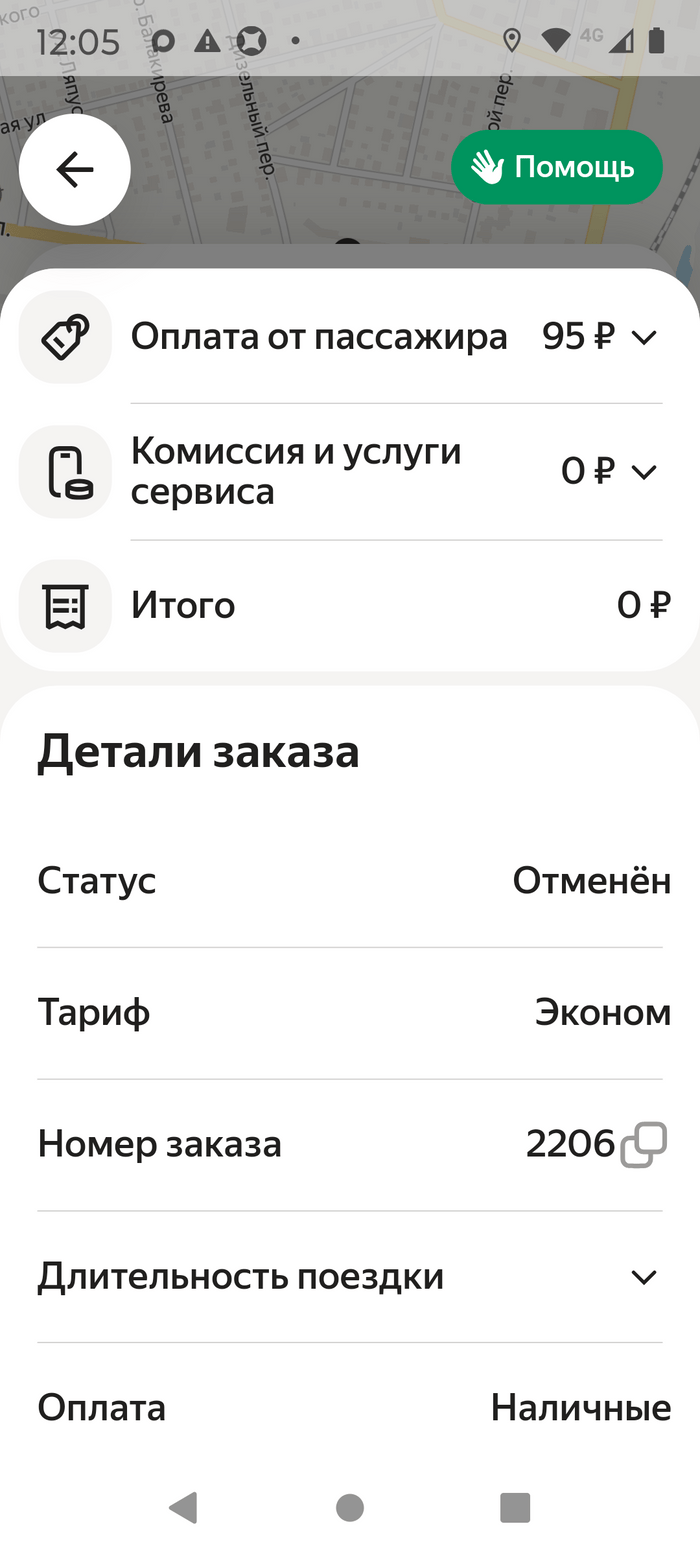 Заказ за наличку отменён пассажиром после подачи и ожидания. Откуда взялась сумма оплаты 95 р?..