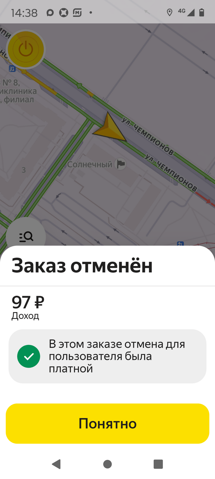 Самый прикол в том, что заказ был отменён после того, как отказал в поездке двум шатающимся телам с полторашкой пива, заблокировав замки и резко свалив.