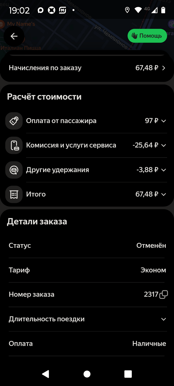 Заказ за наличку отменён пассажиром после подачи и ожидания. Откуда взялась сумма оплаты 95 р?..