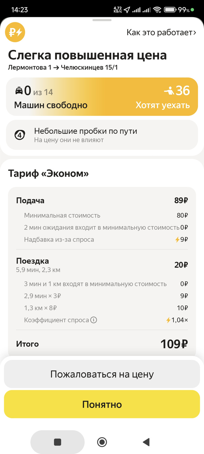 А какой должен быть? Так то 14:27 будний день. Ехать в это время никому никуда не надо. Хорошо что вообще кэф есть.