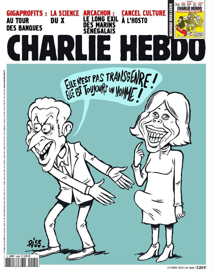 Французский журнал Charlie Hebdo издевается над президентом и е его женой трансгендером.