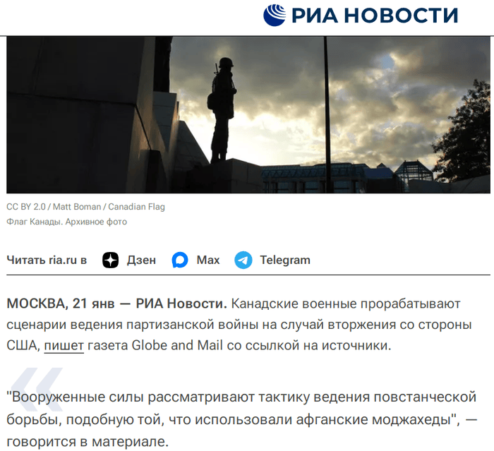 Канадцы, например, уже всё поняли. Там звучат призывы готовиться к партизанской войне против США после вторжения: