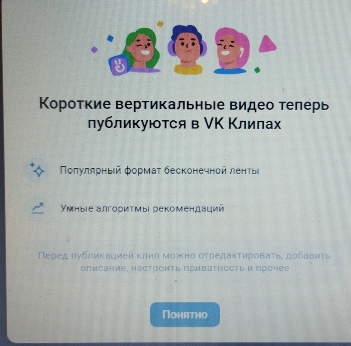 Попробуйте новый короткий вертикалтный до минуты создать, получится только клип и только ссылка, чужие скаченные клипы - сохраняются в видео, да.