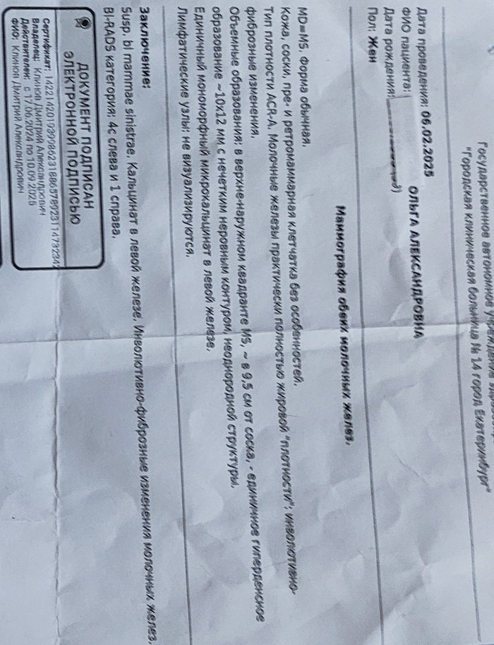 Но, было три новообразования с левой стороны 7го февраля, а 19го марта уже чисто. Ничего нет. Где мне выдали результаты всех обследований для онкоцентра, сами удивились