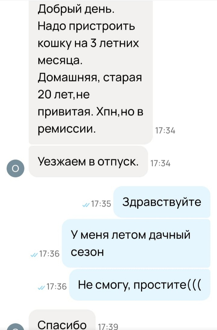 Больное старое животное отдать на передержку на 3 месяца, типа отпуск. У кого-то был отпуск 3 месяца? У учителей?