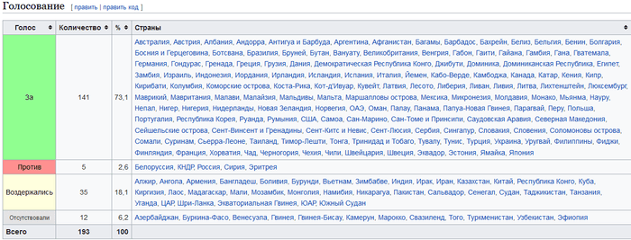 Страна есть страна и "реальная картина отношения мира" такова, что 140 стран осудили