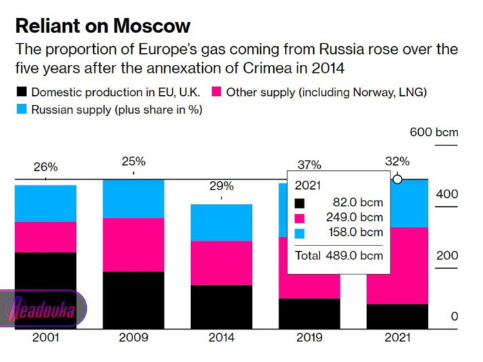Источники-источниками, но когда журналисты обратились в комиссию ЕС с официальным запросом, в ответ получили тишину — а что тут комментировать? Часы тикают — у многих зарубежных компаний крайний срок оплаты истекает в конце мая, так что нужно принимать срочные решения. В Европе на данный момент 32% всего газа приходится на российские поставки. С 2014 года Евросоюз увеличил объемы экспортируемого из России голубого топлива на 40 млрд кубометров — до 158. Одновременно с этим ЕС сократила собственное производство в 1,7 раза — до 82 млрд кубометров.