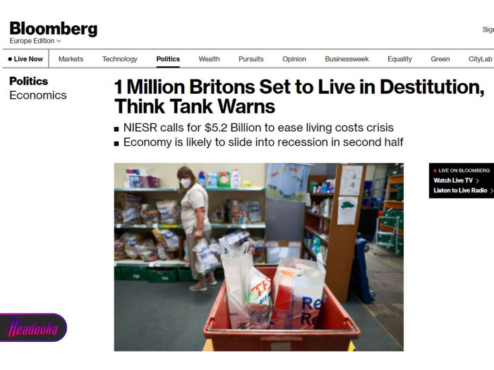 К такому социальному потрясению Великобритания придет на фоне роста цен на энергоносители и серьезные проблемы с трудоустройством. «В крайнюю нищету» в скором времени скатятся свыше 250 тысяч британских семей, пишет Bloomberg, опираясь на данные британского института NIESR. Уже сейчас жителям государства приходится тратить меньше денег на куриное мясо, говядину, свинину и рыбу и требовать от правительства прекратить тратить деньги на вооружение Украины.