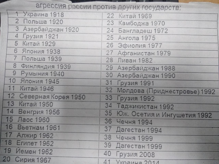 И, конечно, везде отмечается роль "российского агрессора". В таблице можно наблюдать, что Россия была агрессором во всех войнах, включая ВМВ, нападение на Японию в 45 и прочее, прочее. В списке вообще много войн, в которых Россия не участвовала, но составителям это не помешало.