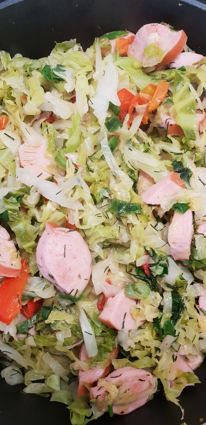 А я таки сделала капусту с сардельками. Солоновато только на мой вкус