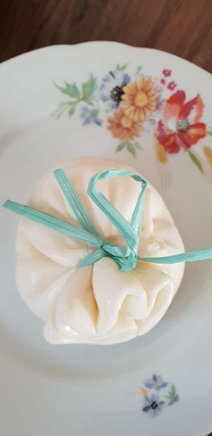 я прочитала, что буррату надо заранее достать, чтобы она была почти комнатной температуры, так лучше раскрывается вкус сливок)) во как)