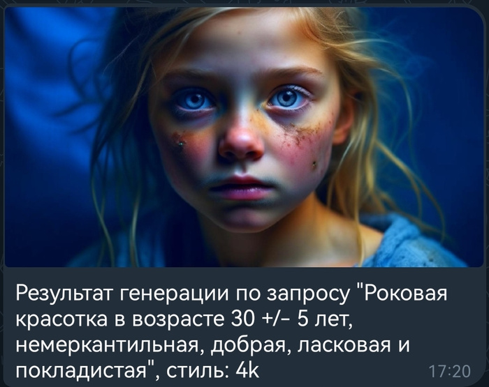 Роковая красотка в возрасте 30 +/- 5 лет, немеркантильная, добрая, ласковая и покладистая