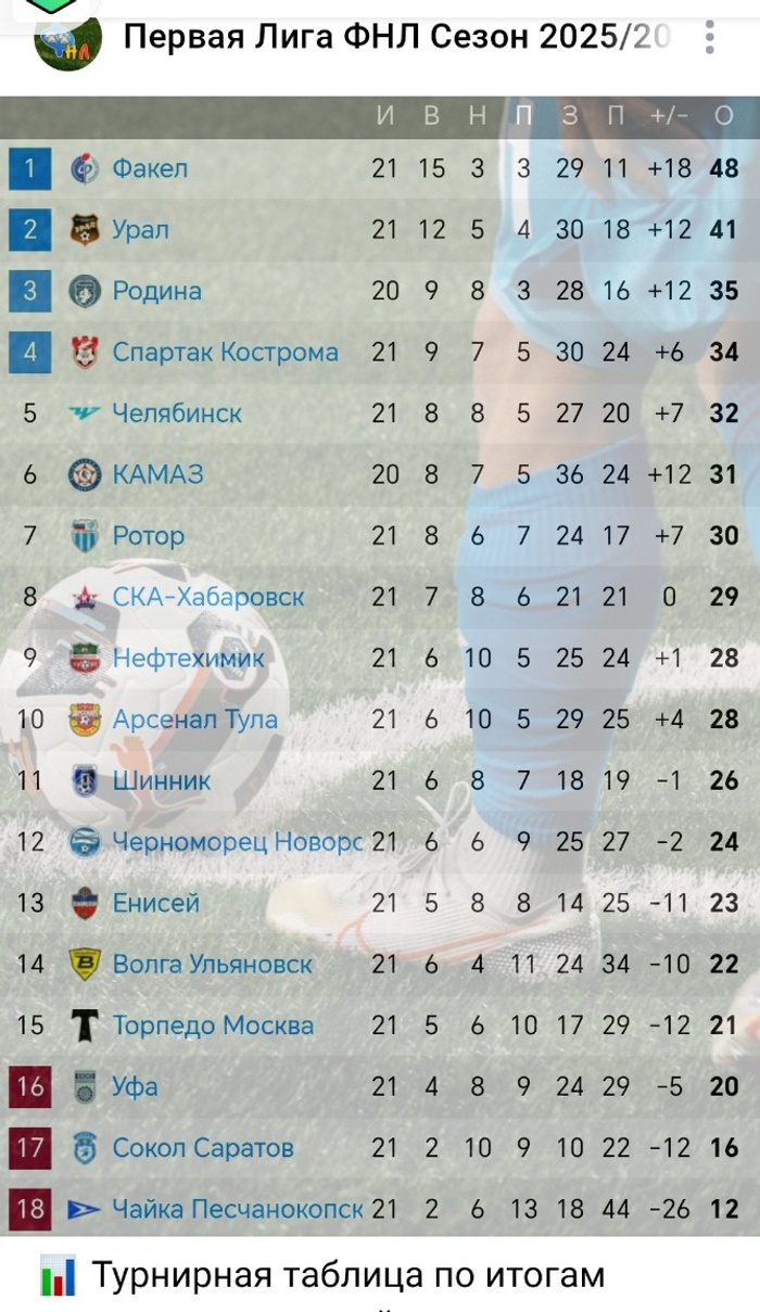 Сегодня играют догоняющие, Родина с Камазом. Как говорит Деревенский - хвосты