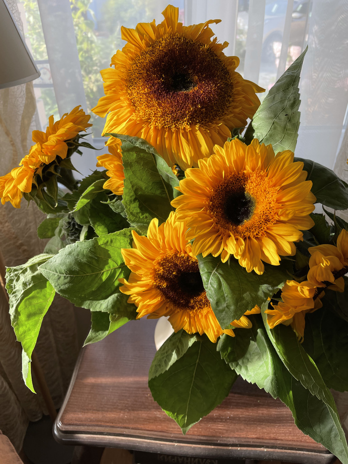 мне как то мой муж бывший целый букет подсолнухов в офис притараканил)) Любил спецэффекты))