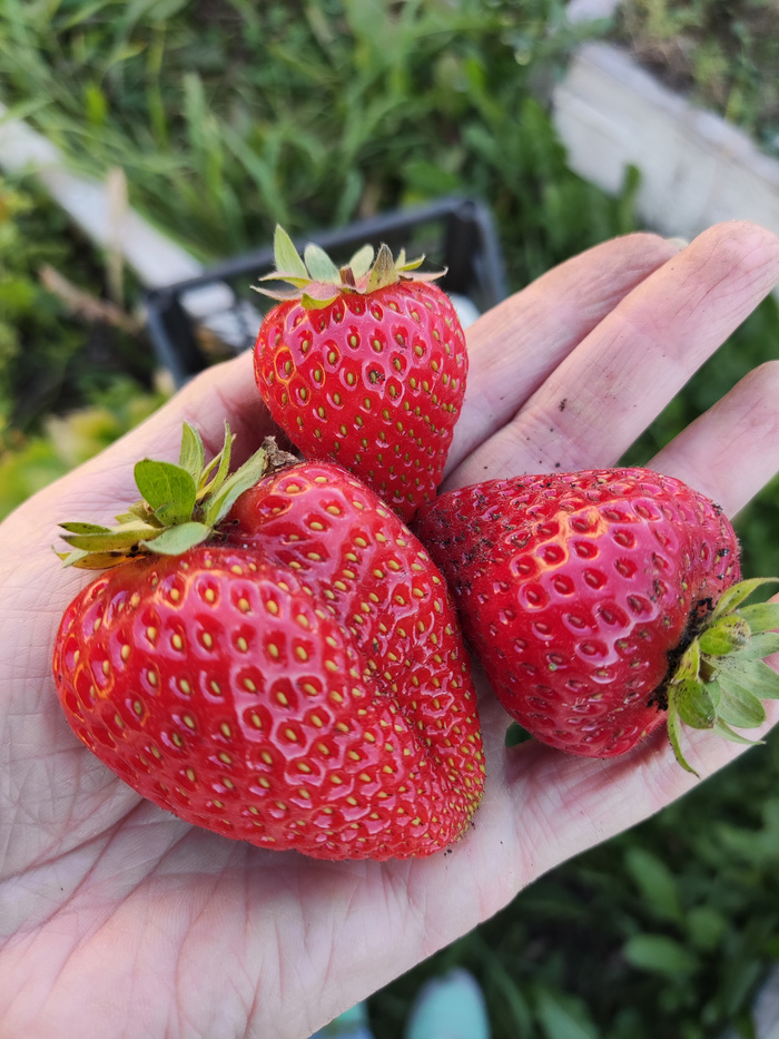 Ведро помидоров. Ещё остались на ветках. 1 литр земляники и щавель внуку. Тыквы.... Высажен лук. Хороший день