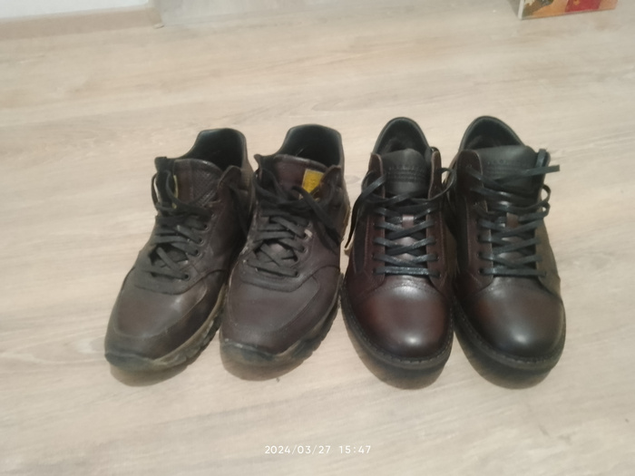 Вот такие ботиночки отечественные . Левую пару оказывается два года проносил уже! И как новые. Вторые на старость (и квартиру -студию в Светлом ещё к ним )