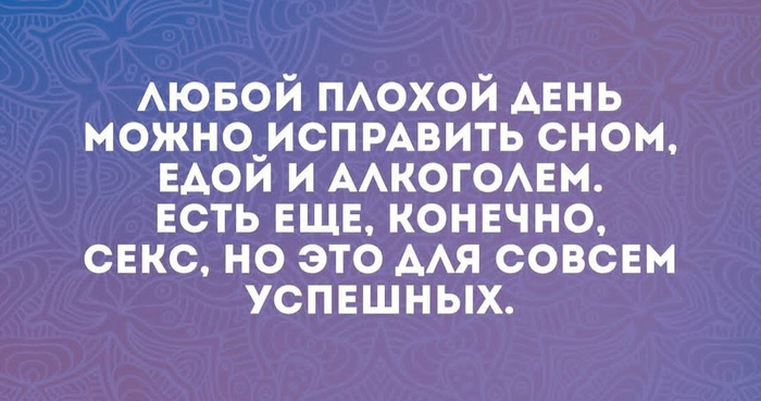 Если этого нет, то дальше бесконечная тоска и беспробудное пьянство. Хотяяя, есть варианты