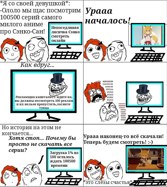 Основной юмор этой истории - в том, что мы с моей девушкой хотели аниме в интернете посмотреть, но там было много рекламы, но мы перехетрили интернет и просто всё скачали, без рекламы