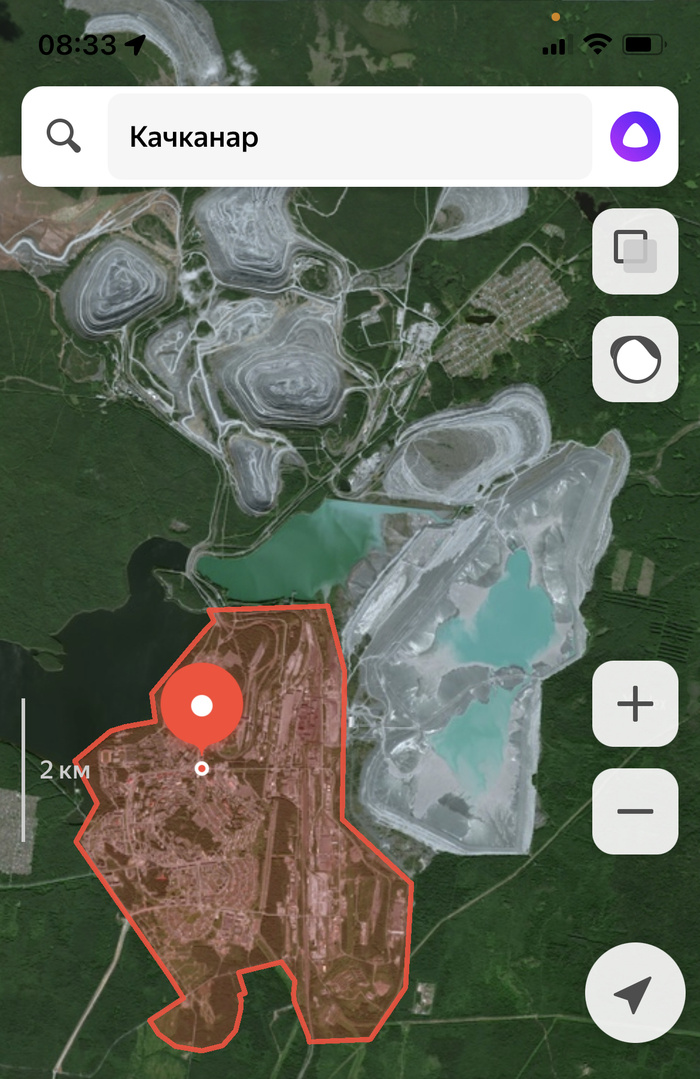 Выделен - город. Шламы - справа от него.