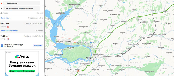 это обратный маршрут, из Балакова до татнефти в Бавлах. время выезда около 6 с Балаково