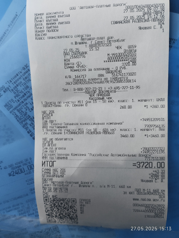 Да вот на это чек автодора.