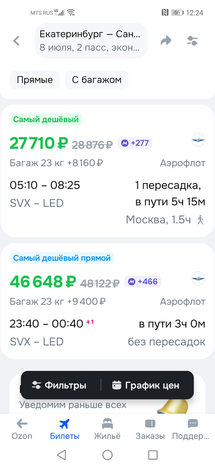И заплатил 12 000 руб. Два билета на самолёт, до Питера