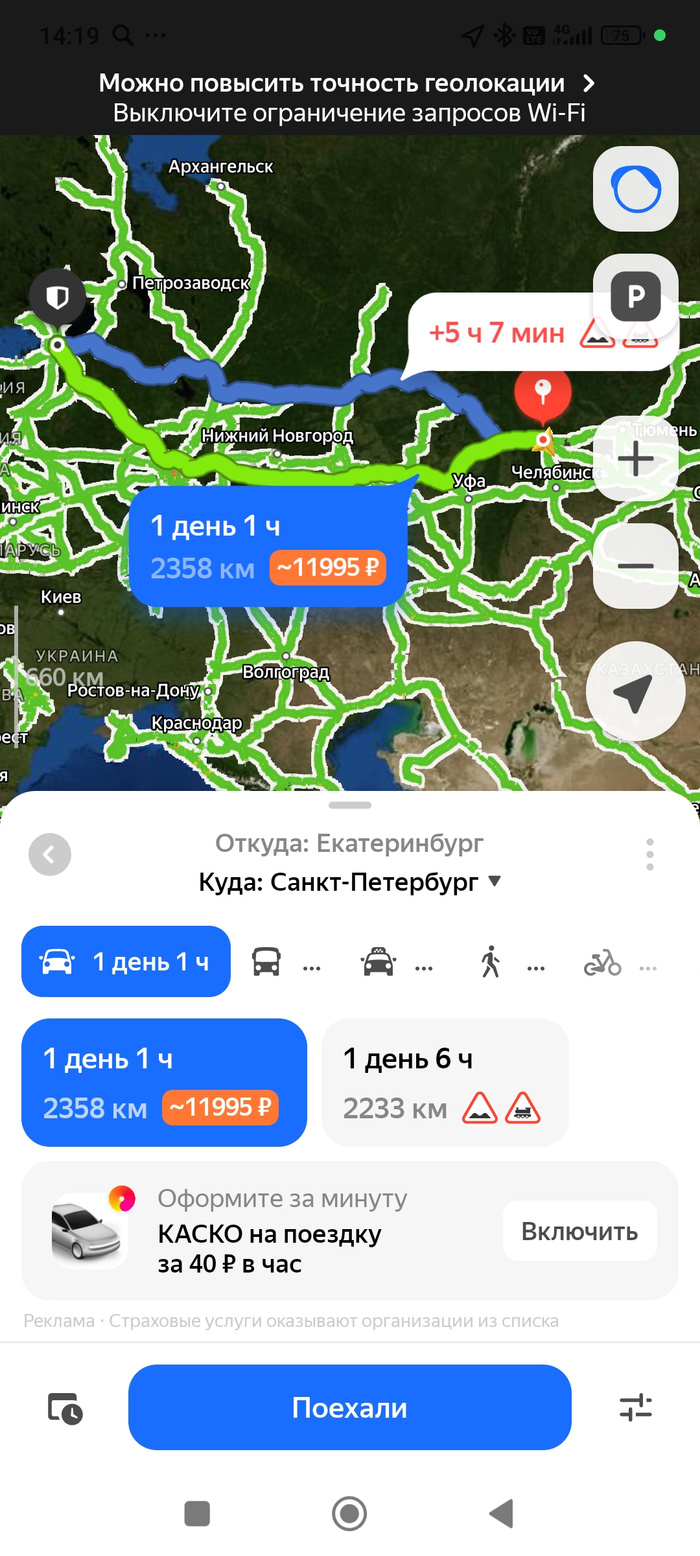 14,5 часов в движении от Каменска-Уральского до Хвалынска. От города до города. По одометру 1320км.
