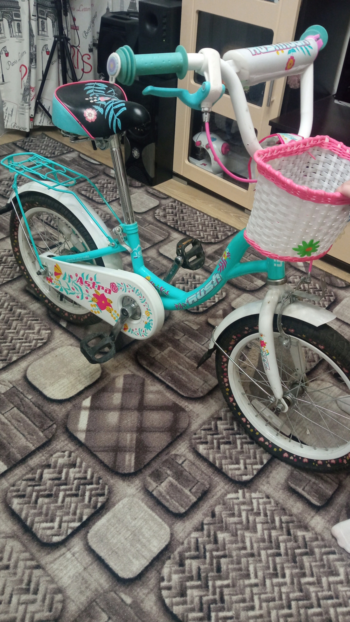 Велосипед детский для девочек 16 дюймов, дополнительных колес нет. 1500р.