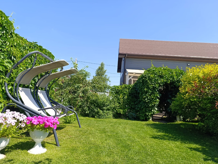 Вон там справа стоит пергола,, это выход из сада, ну или вход, смотря с какой стороны посмотреть...