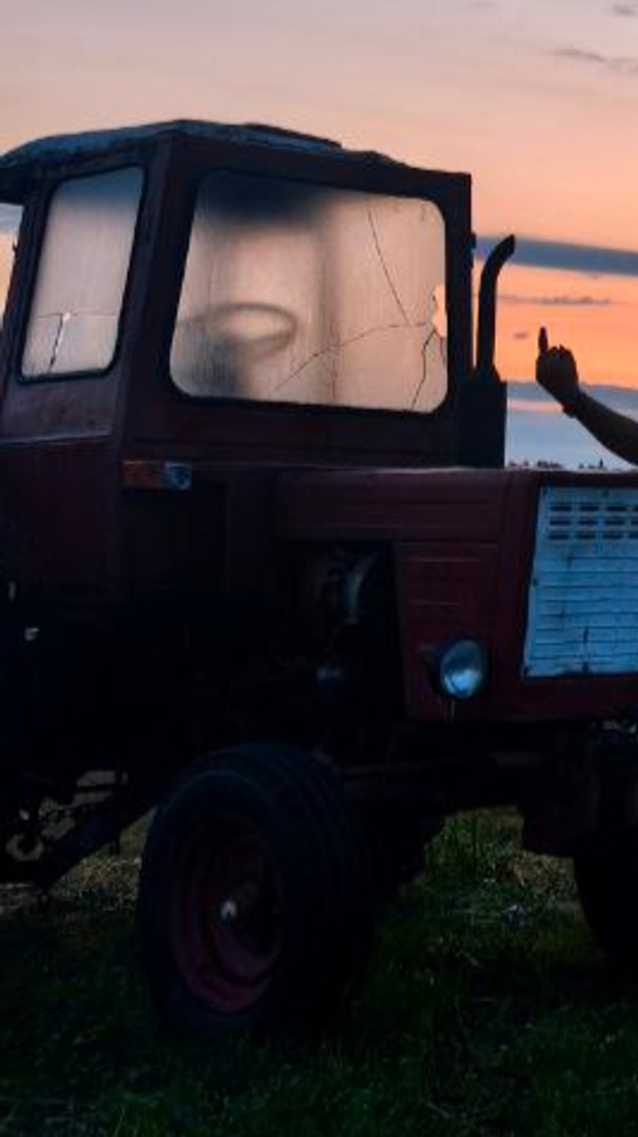 Че лобовуха-то разбитая. Не видно ж нихрена в нее.
