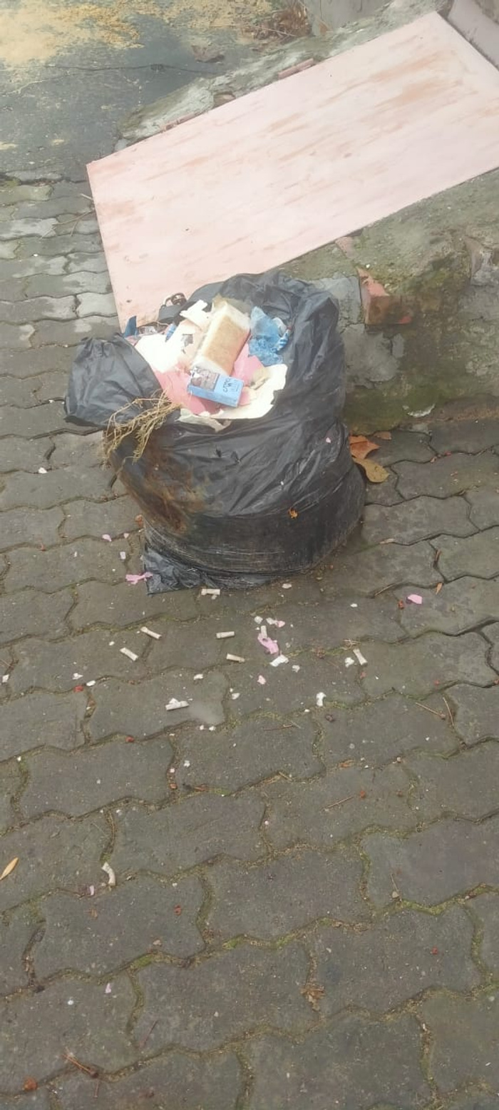 Действительно, у нас небольшой двор и парень - бывший детдомовец убирает в подъездах и в отсутствие постоянного дворника двор очищал после листопада от листвы, один из мешков просто забыл увезти на помойку.
